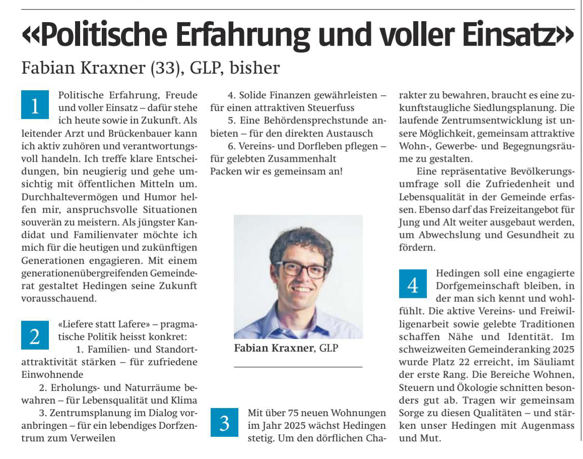 • Im Gemeinderat von Hedingen seit 2022